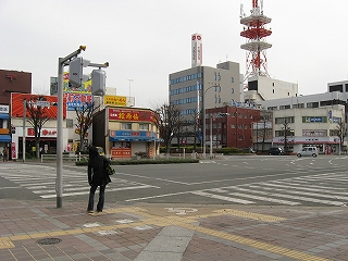 交差点の銀水寄りにて。背後に駅舎。