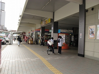 駅前の道路に出る歩道の様子。
