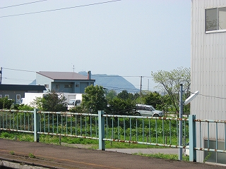 駅裏の風景。道内最南端の山塊の始まり。