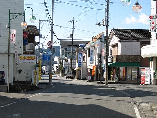 駅前に戻って。駅前のT字路にて、まっすぐを見て。ちょっと不思議な風景。