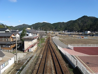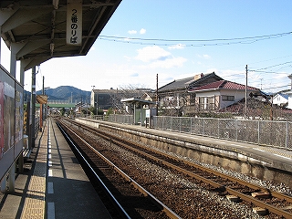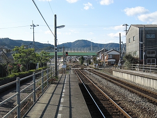 上り方の風景。レールは左へとカーブし、吾桑駅へと向かう。