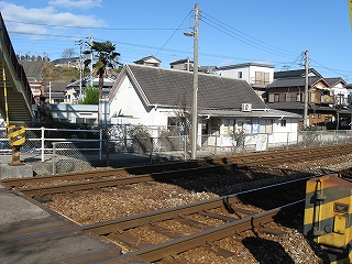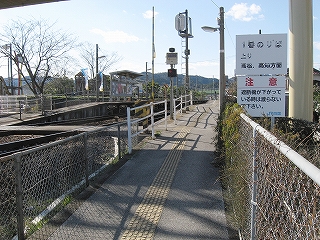 踏切入口前にて。まっすぐ行って左折すると駅舎。