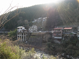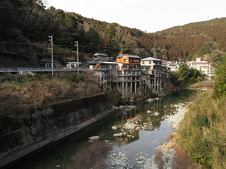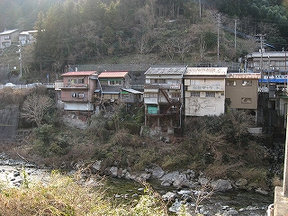 その近くから見た川べりの家々の様子。