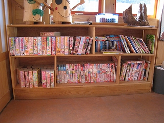 期待して、待合室に入る。そこでちょっと首をひねる。なんだかプレイルームのような雰囲気となっているではないか。子供の作った賑やかな掲示物が貼られる一方、かなりのコミックが揃えられていた。全体に三角屋根が低く、屋根裏のようで、遊び盛りの子のアジトのようだ。