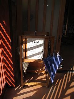 良心傘立て。引き戸が杉模様の桟になっているから影がこんななっている。
