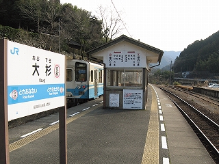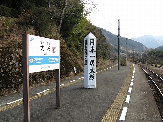 大杉という名前は、妙に誇らしげだった。日本一の杉の巨木が自慢だ。そのことはホームにあるえらく太い標柱からわかったが、字ががくがくしている。町の子が書いたんだな。