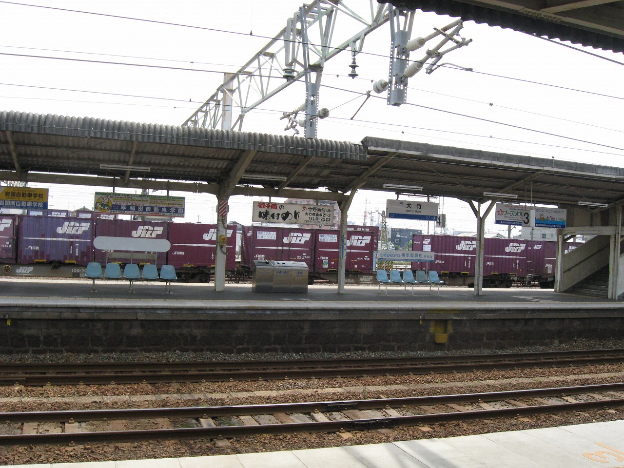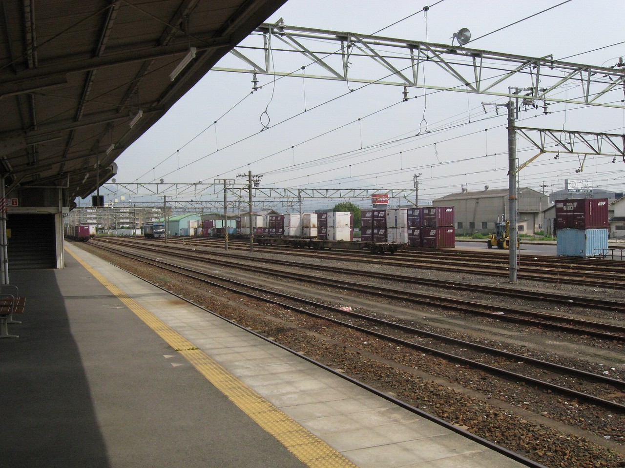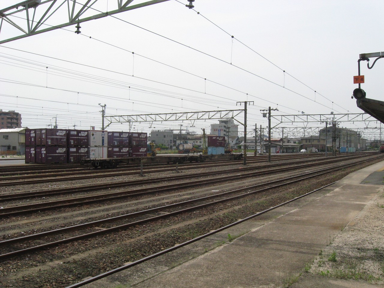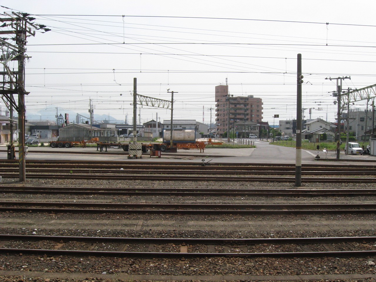 駅裏手。トラックによるひどい事故が相次ぐ中、貨物が見直されている。