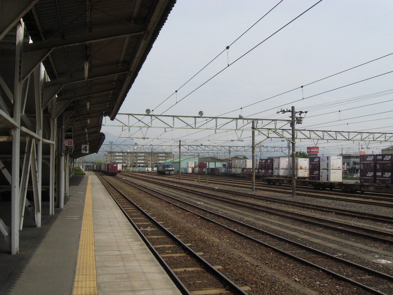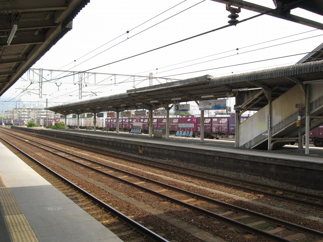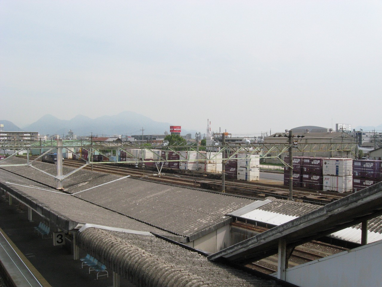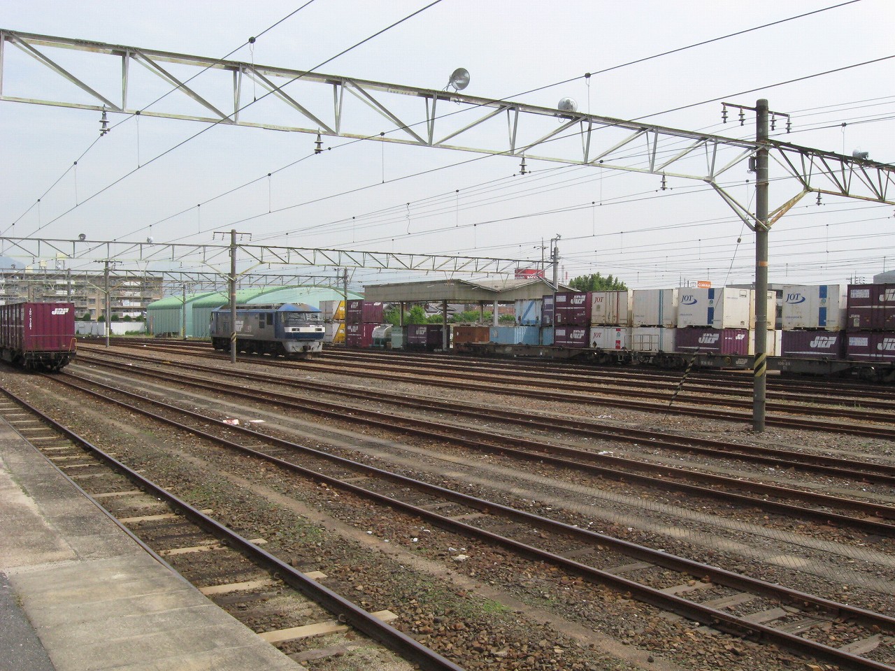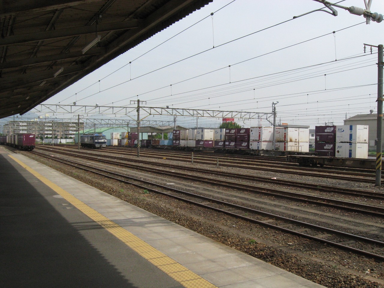駅裏手。トラックによるひどい事故が相次ぐ中、貨物が見直されている。