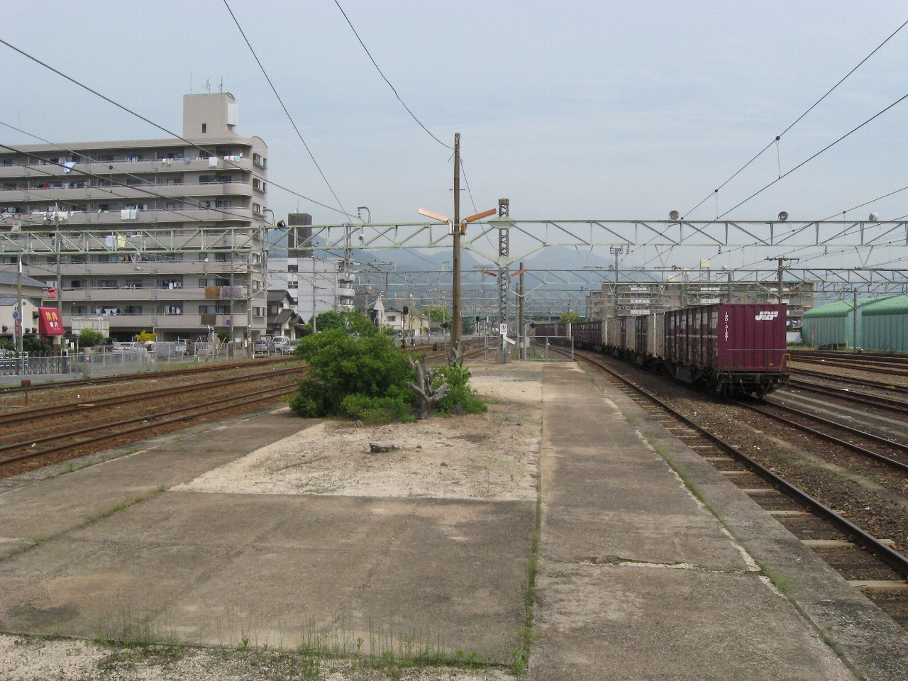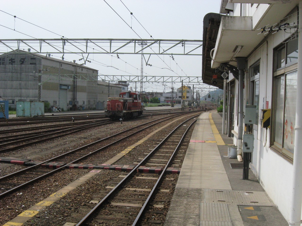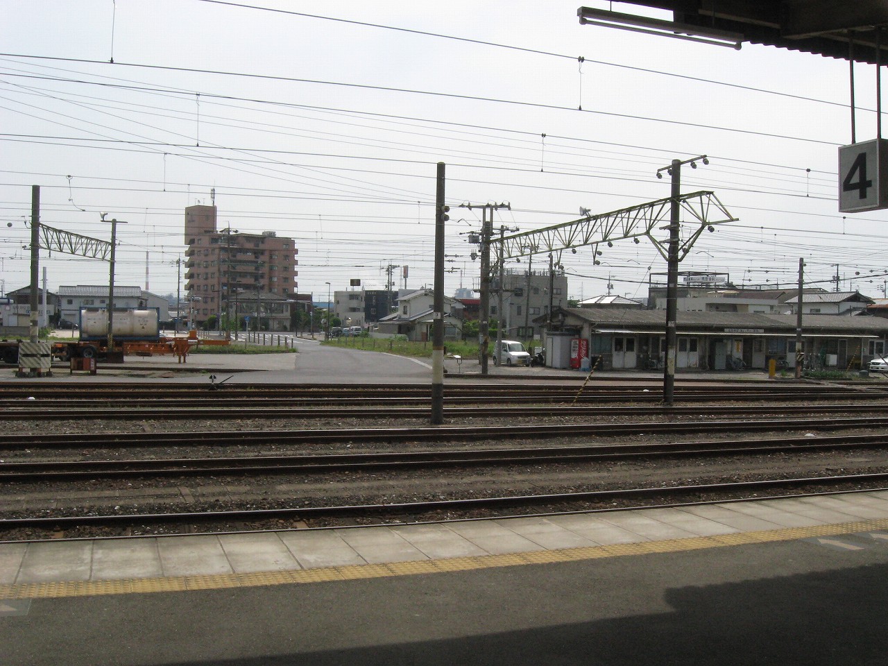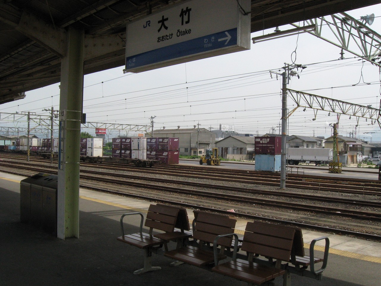 駅裏手。トラックによるひどい事故が相次ぐ中、貨物が見直されている。