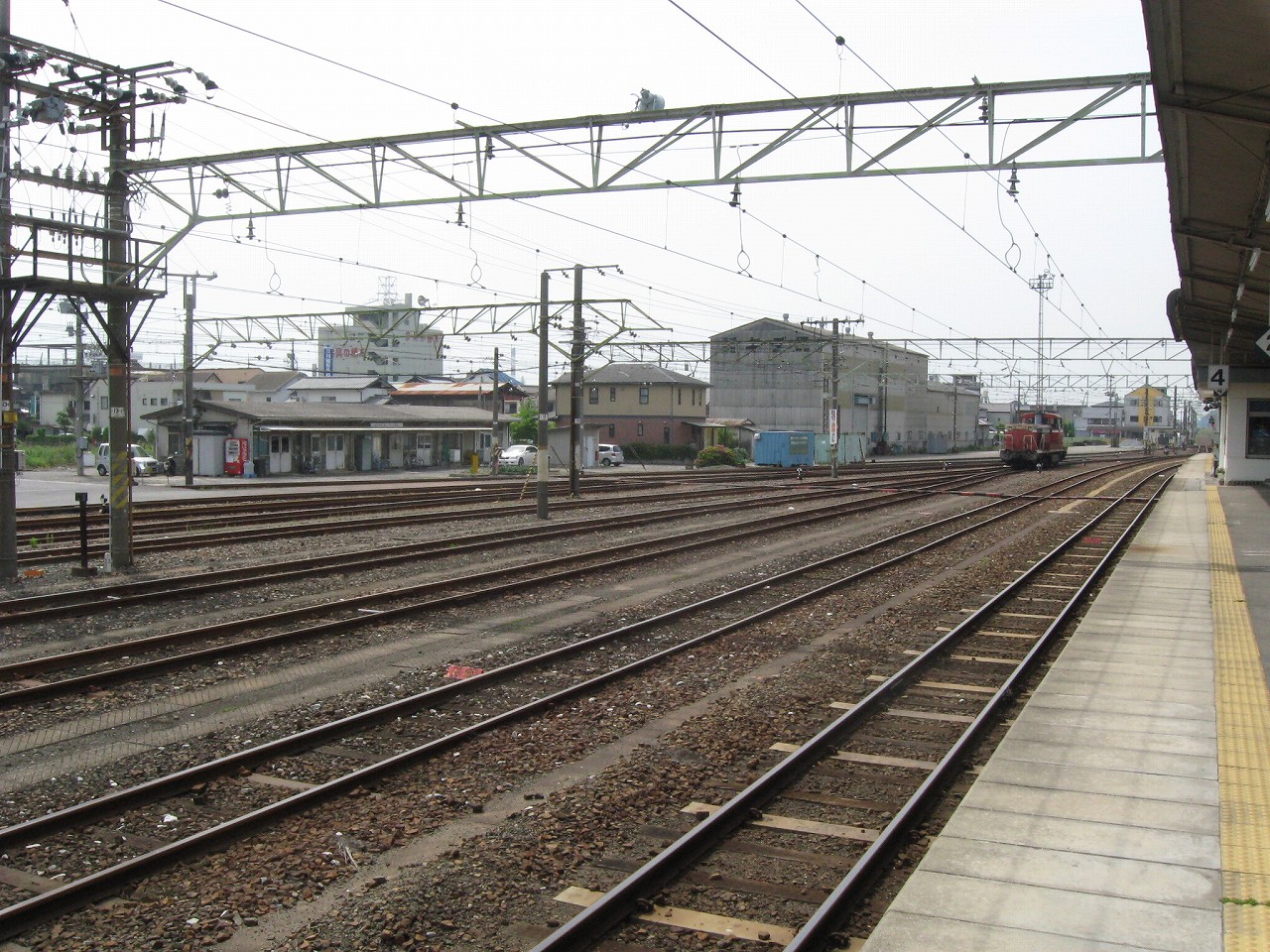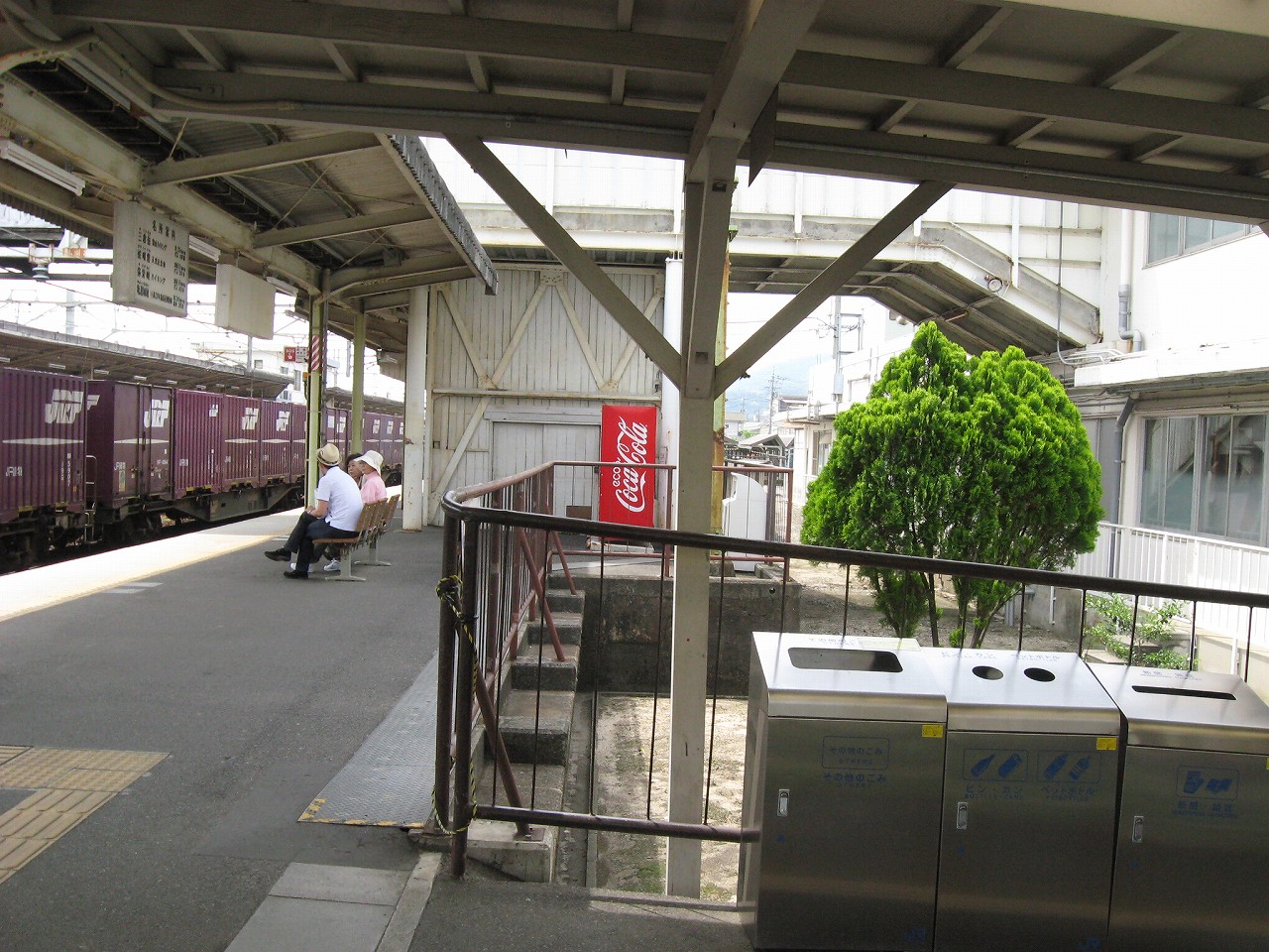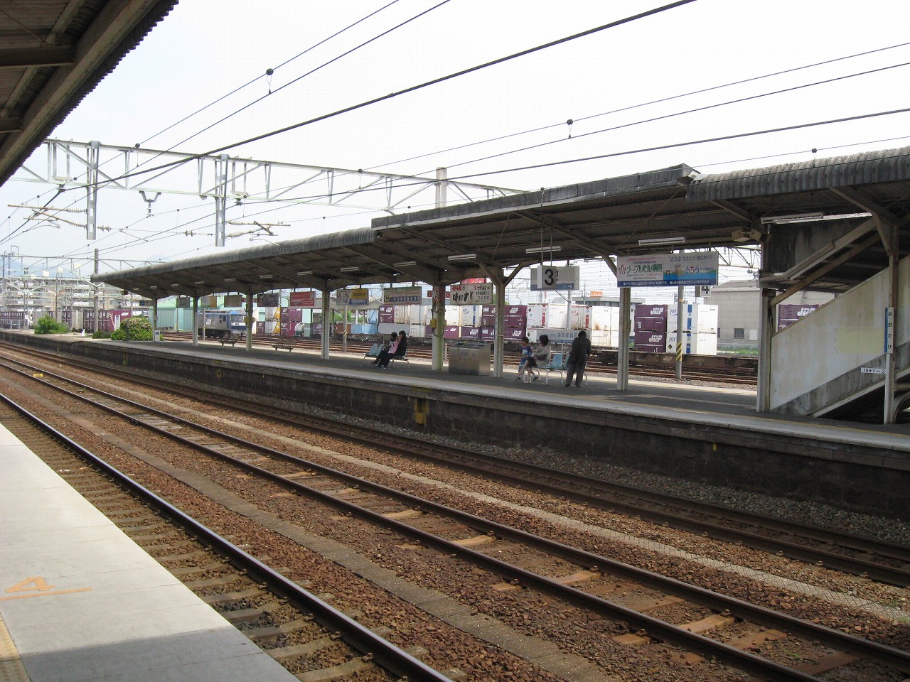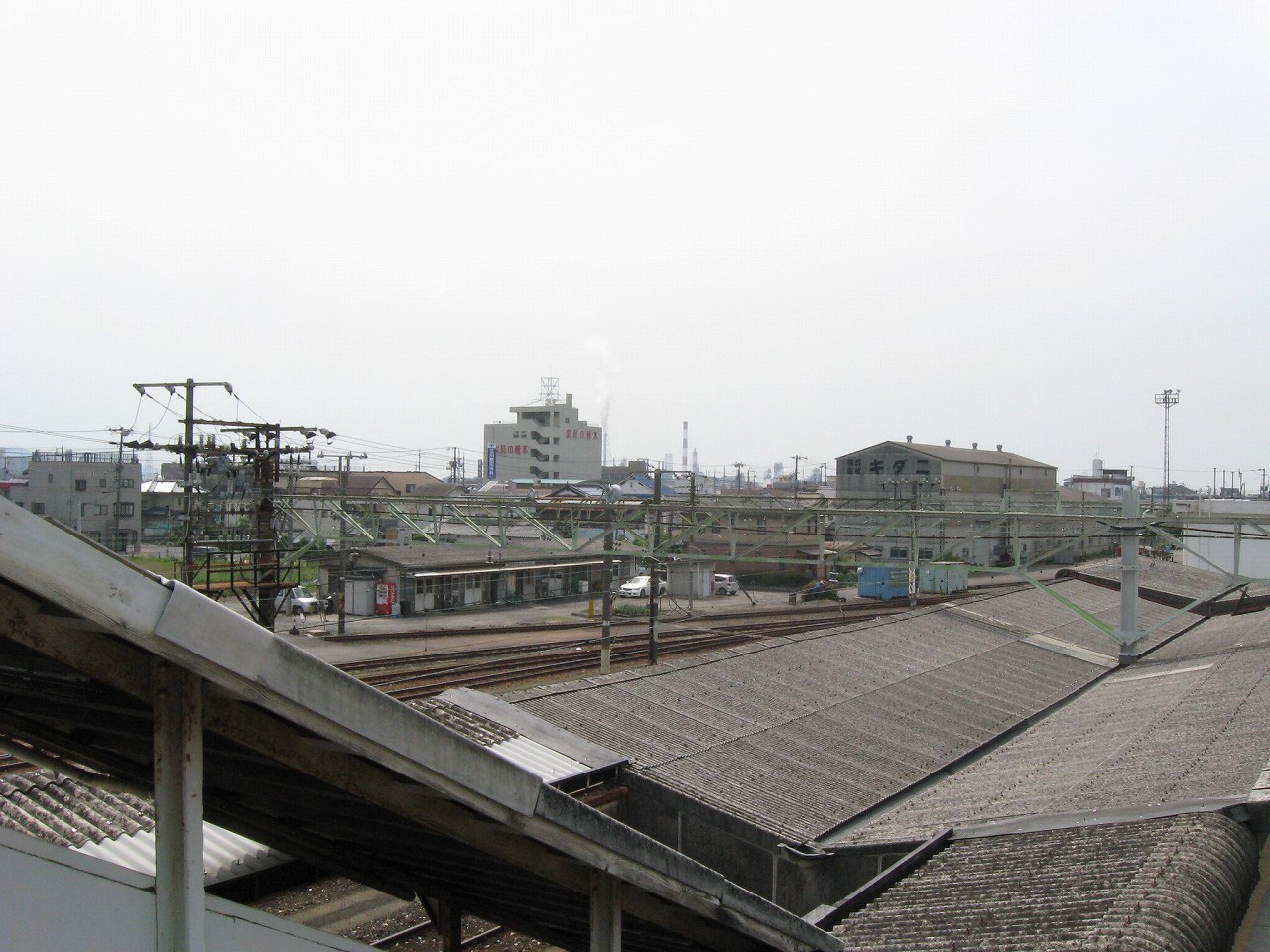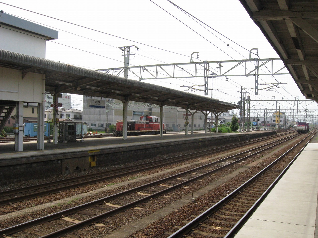 駅裏手。トラックによるひどい事故が相次ぐ中、貨物が見直されている。
