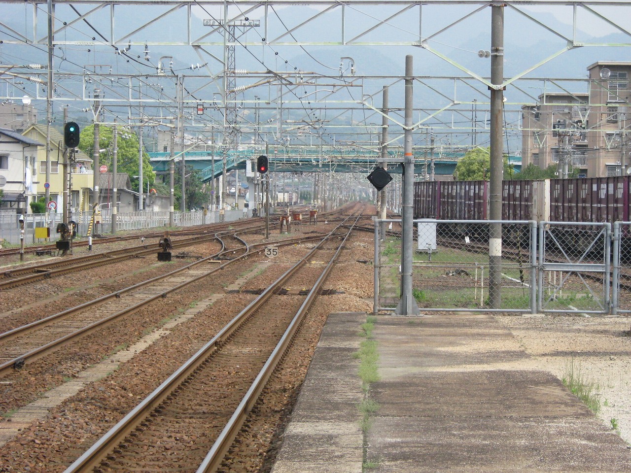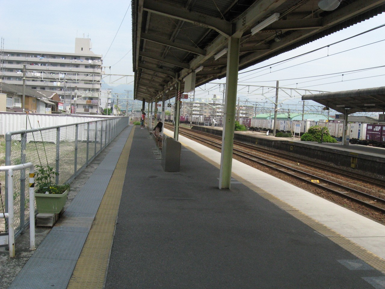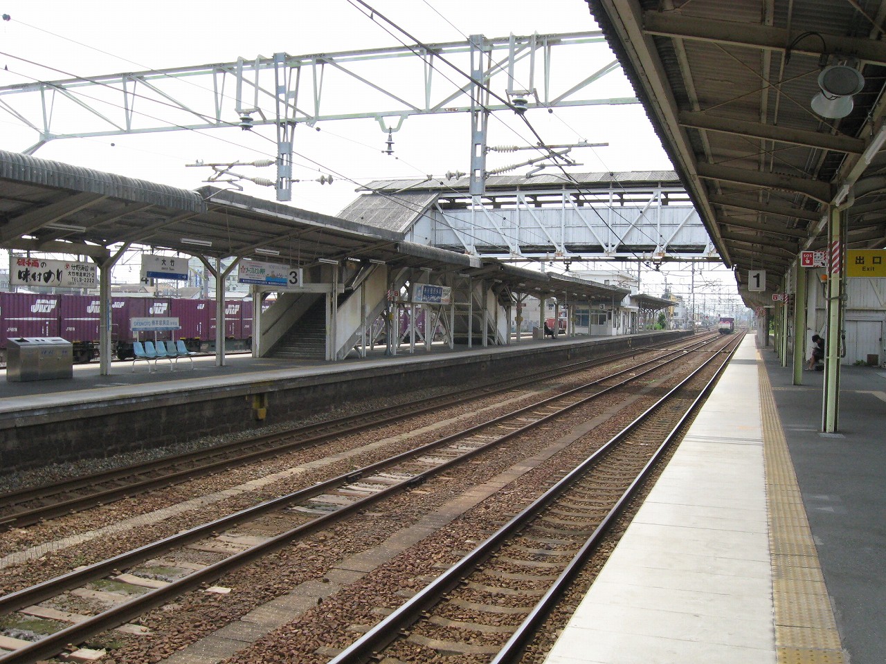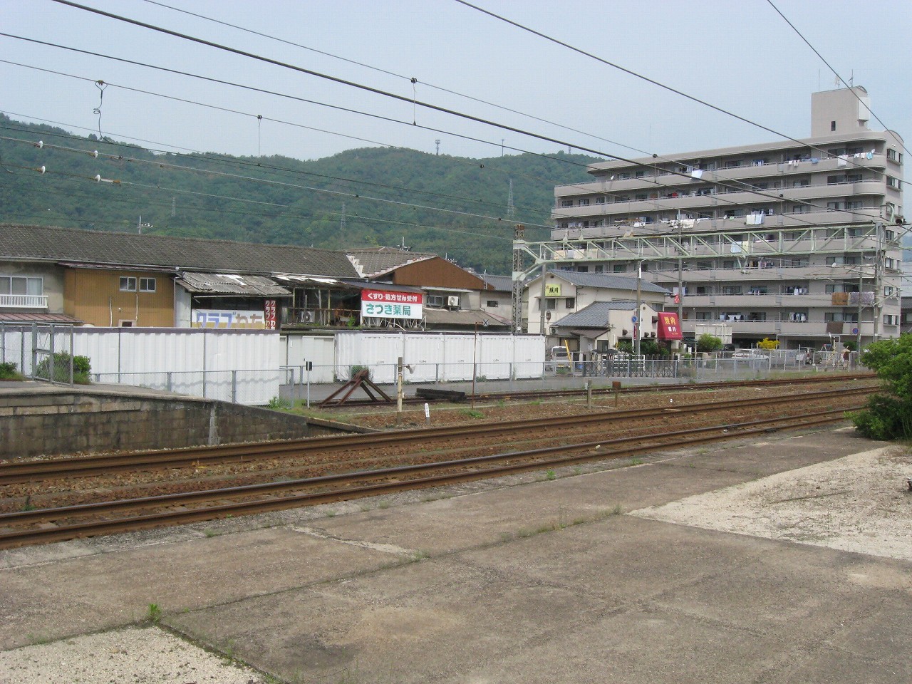 駅裏手。トラックによるひどい事故が相次ぐ中、貨物が見直されている。