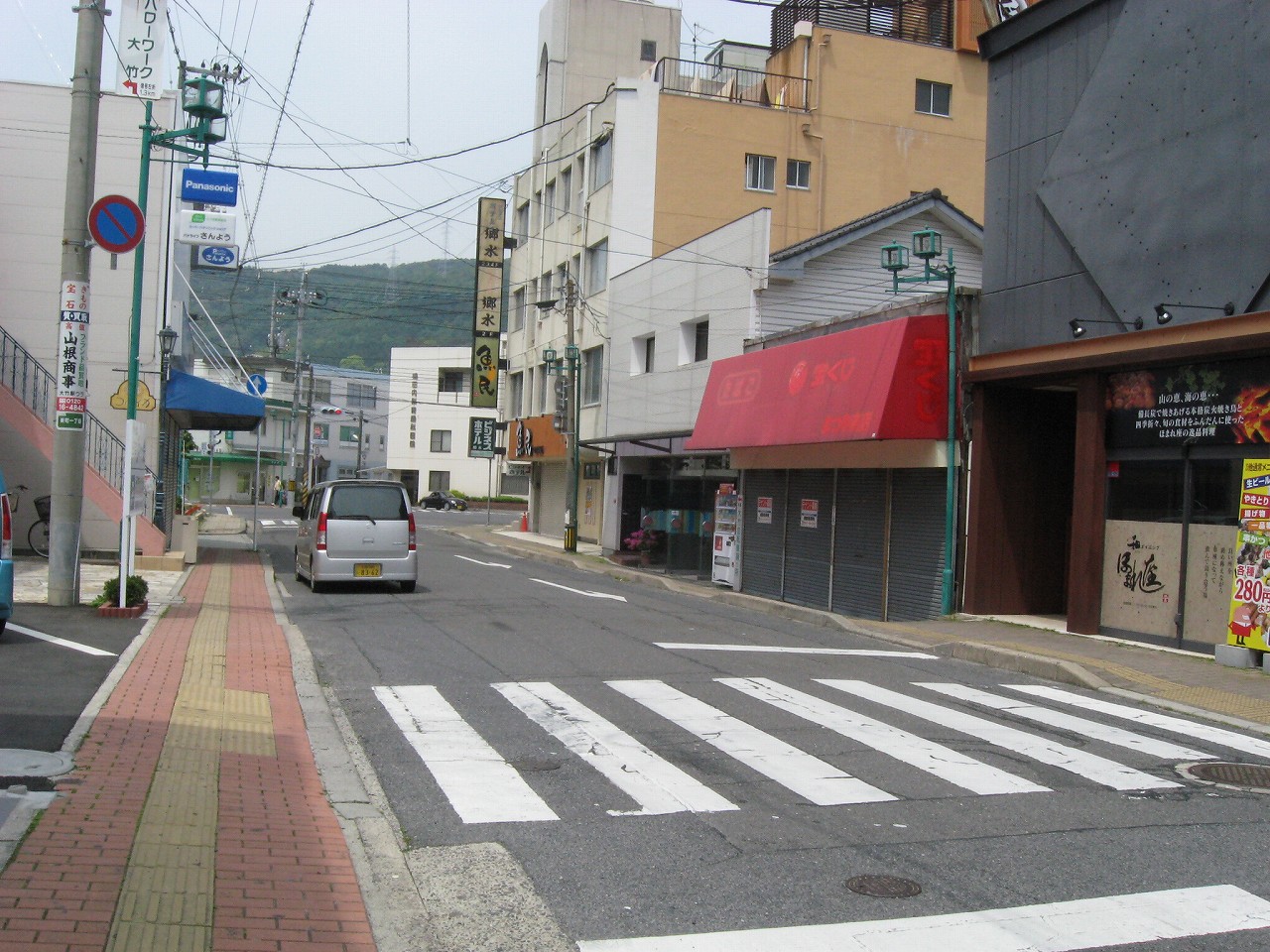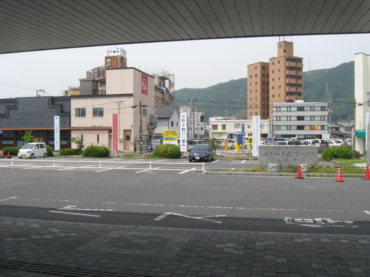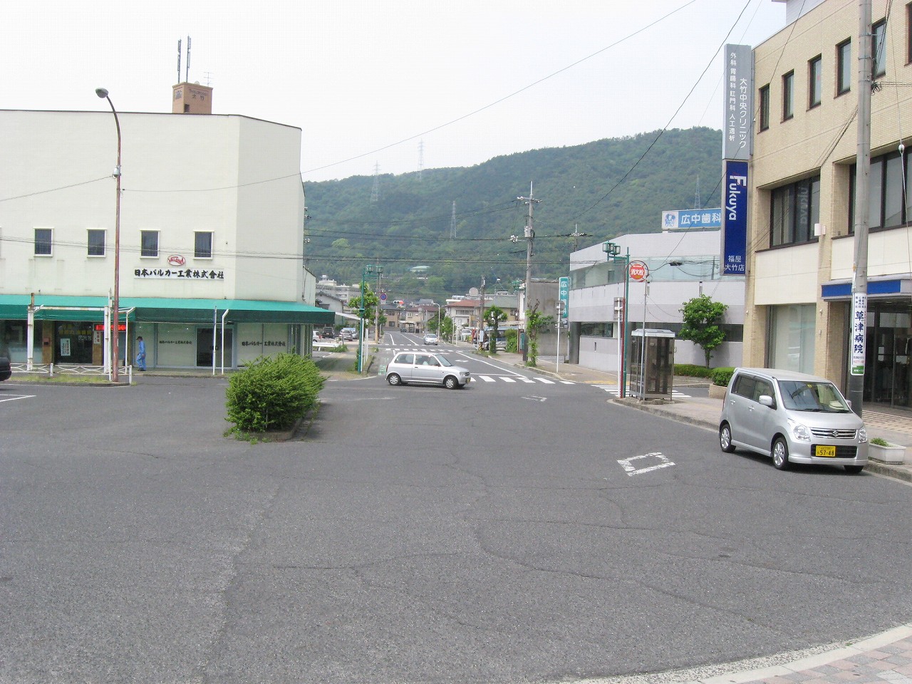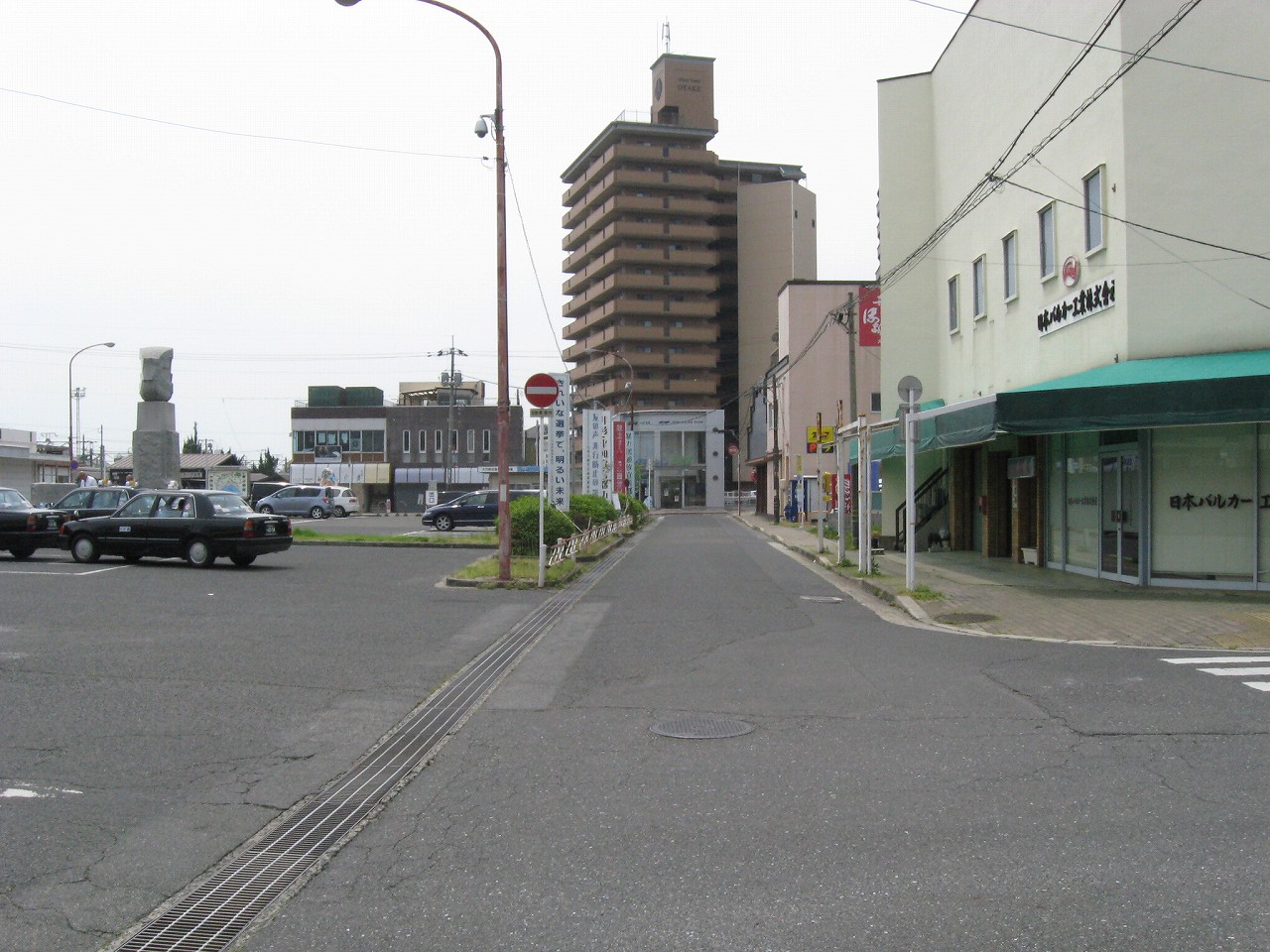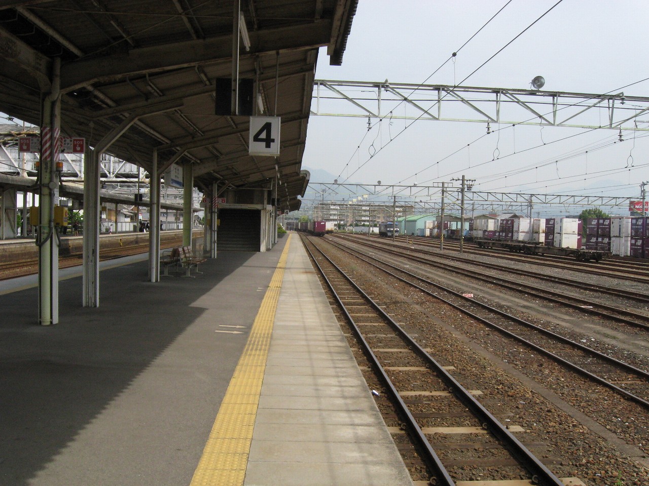 駅裏手。トラックによるひどい事故が相次ぐ中、貨物が見直されている。