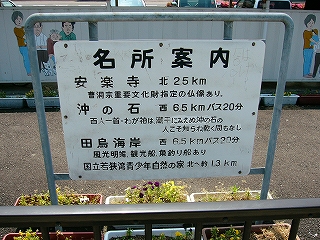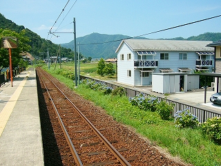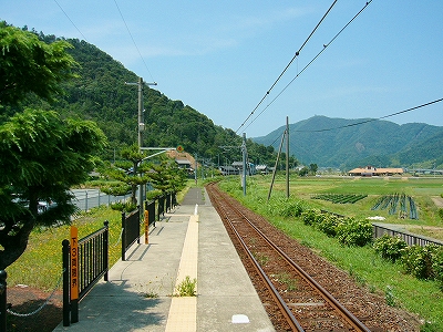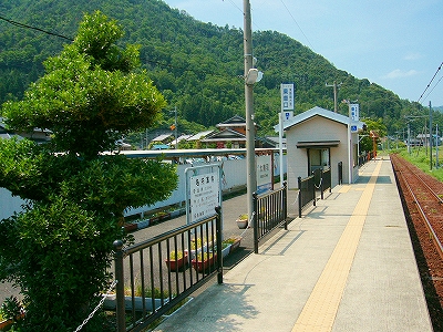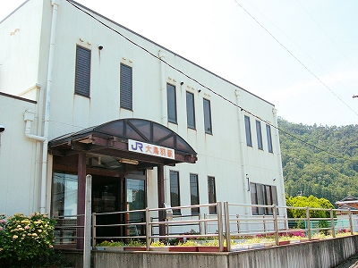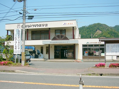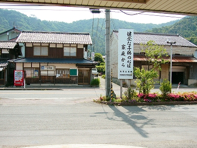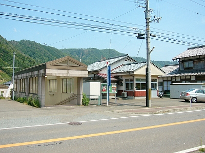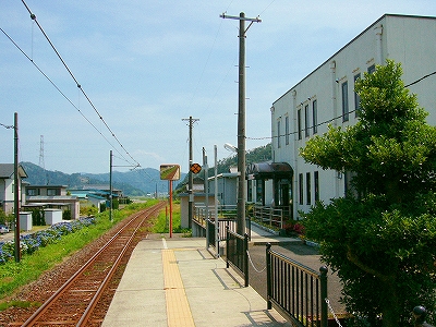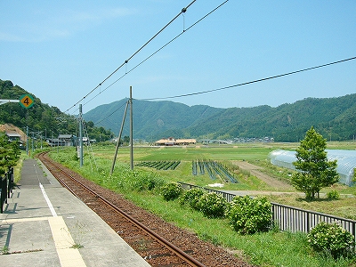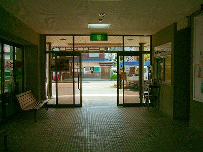 鳥羽川がつくる緩い谷のため、遠くの里山の端がしばしば下から眼球を撫でたが、それでも駅前に広く敷地が取ってあり、ときどき車が入って来て、農協に用を済ましに来たりする人がいて、付近でここは、重要そうなところだった。農協や商店、郵便局がある上、ホームから見えた住宅地へ行く地下道があったくらいだから、小さな駅にして揃っていた。ただ、ずいぶん前に今も流行している合同建築というやり方で建て替えを済ませたため、鉄筋コンクリートなものの、もう古くなり、時代を先取りした悲哀が、なきにしもあらずだ。でも、若狭ものづくり美学舎、農村改善センター、そんな名前が付けられていて、いっぱいの期待をかけられて造られ、用いられているのが推し測られた。