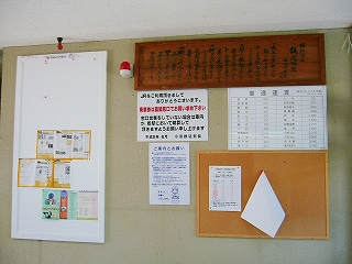 掲示コーナー。鉄道唱歌が掛かる。