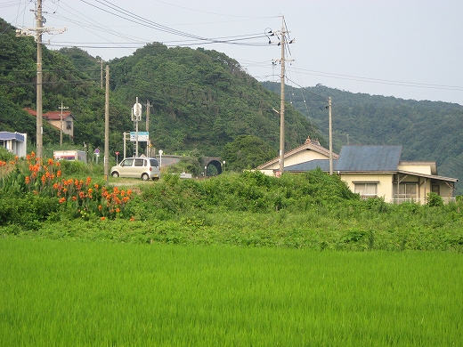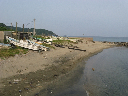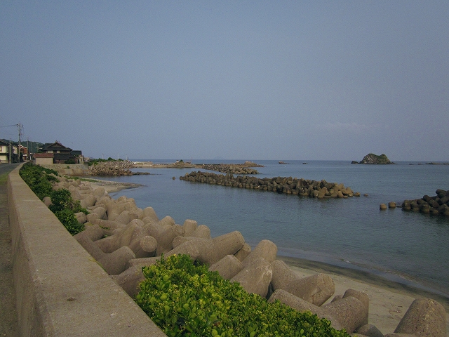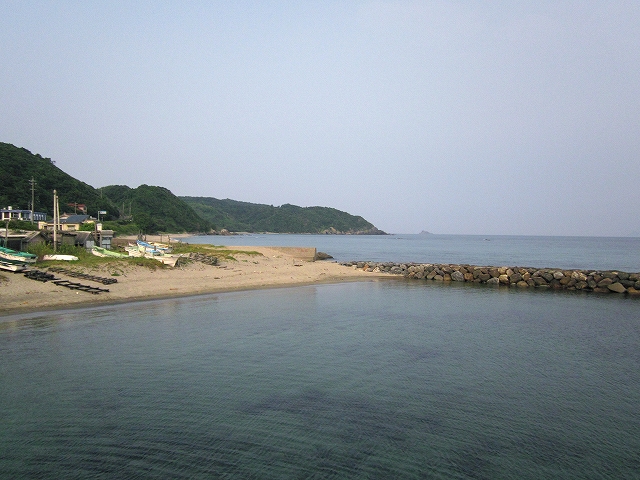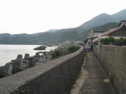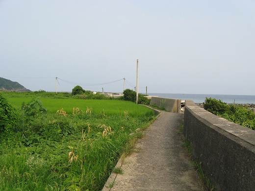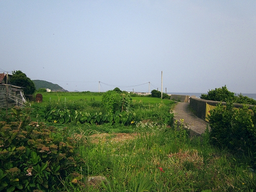 もう集落のさびしい外れだ。山と畑と海…そんな光景の向うは、もうただただ人家どころか道すらないない緩やかな山の海岸が延々と実に素朴に続いているだけで、私は浦島太郎みたいな昔話を思い出してしまっていた。