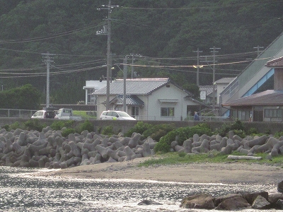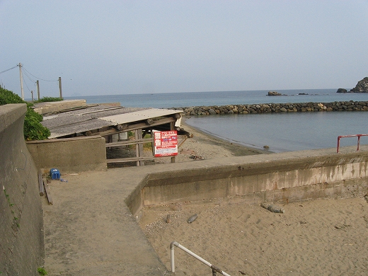 とかくたいへんおもしろい立地で、私は早速堤防台に上がって海を観た後、海岸沿いに意気揚々と歩きはじめた。ちょっと出鼻をくじかれたけど。