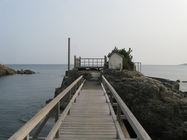おもしろい桟橋を味わって祠に到着! 折居の海は浅瀬では玻璃の真水のようで、遠くは甚だ深く青かった。きっとここは山が豊かなのだろう。きつい潮のにおいは無数の矢のように、自分の綿の半袖と嗅覚細胞をさんざん突き通してくる。しだいにそれはクドイぐらいのものになった。でも、これが海辺というものなんだよ。