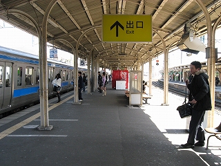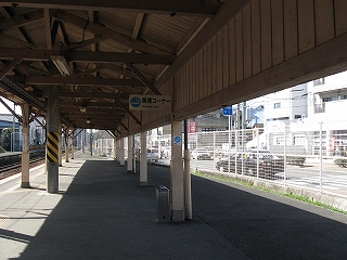 出たとこを見回すと2階、盛土の例の鹿児島本線ホームの木壁がすぐに見えたし、車道がそれをくぐっていて、裏手らしく狭い感じだったのに、改札や券売機前にはこれから乗ろうとする人が多く、都市の強さが胸に響いてきた。いちおう三角屋根の裏口駅舎が建っているが、外から中の様子は手に取るようにわかる簡単な感じだった。