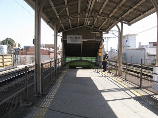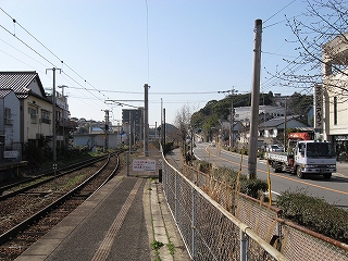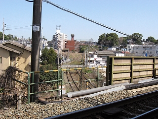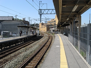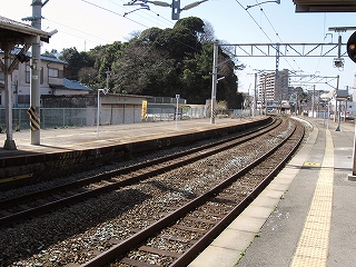 隣のホームと民家の並び。