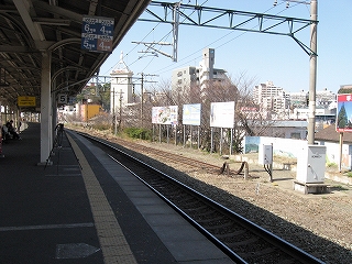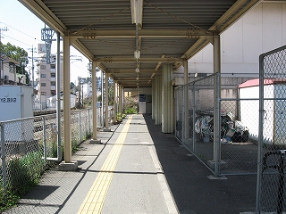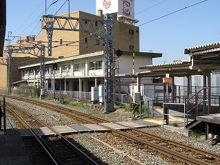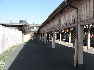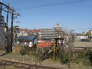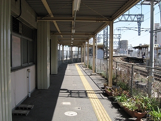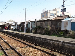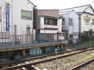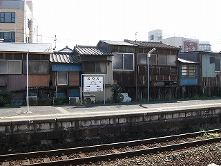 向かいのホームの様子。陋屋が並んでいる。