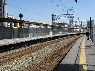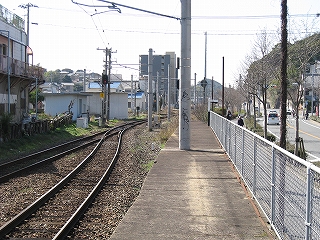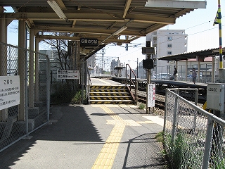 ホーム端のフェンスより先の様子。線形状、乗降できないが、以前は違ったのであろうか。