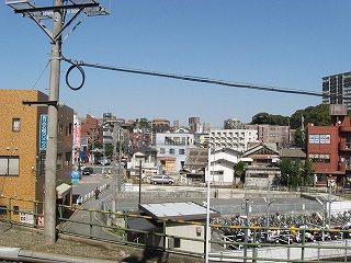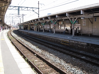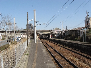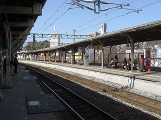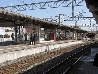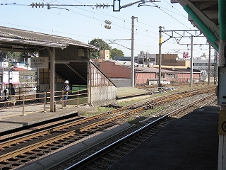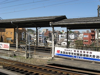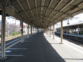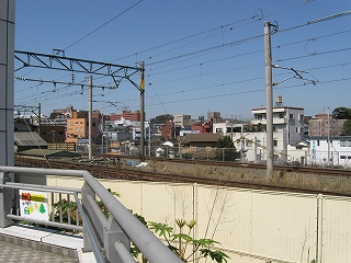 跨道橋から見た駅舎遠景。