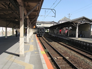 そのレンガ地下道には入らず、右の階段を上った。階段を上るとなればたいていは跨線橋なのだが、この駅では2階、鹿児島本線の下りホーム3番線になってしまう。跨線橋はというと、このホームが跨線橋代わり。1階の筑豊本線とクロスしているからね。
