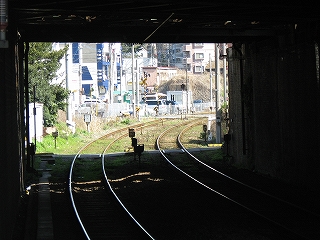 上屋下から見た線路内の風景。御覧のように2番線のみ電化されている。