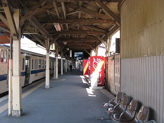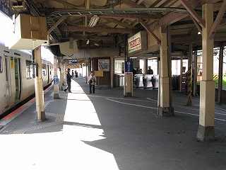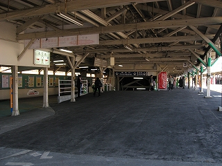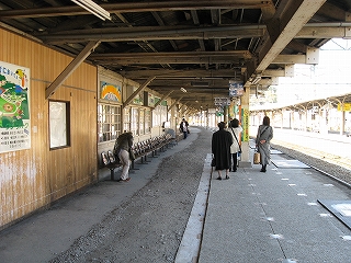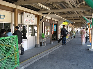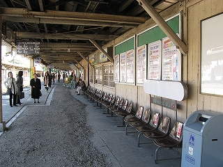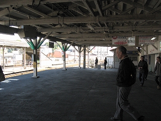 乗り場は壁側に待合室、売店、格子入りガラスが並んでいてあっというような古風な駅、しかも床面工事のため砂利がむき出しになっていて、もう何時代かわからなくなった。