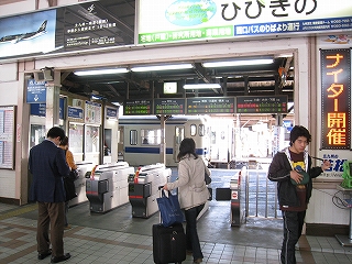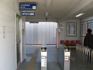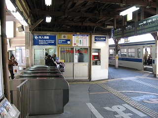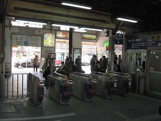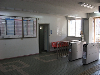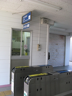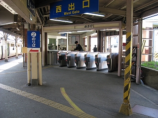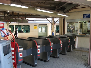 自動改札は扉の閉じない簡易型。乗り換えには有人通路を無言にて通過する。