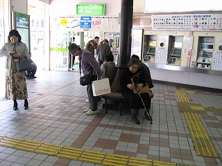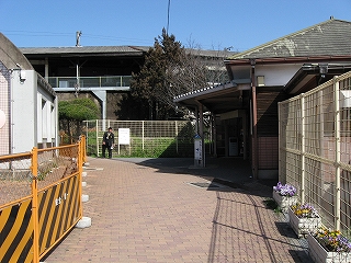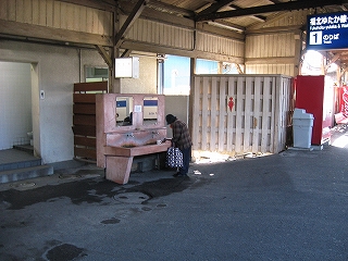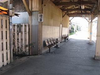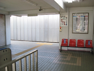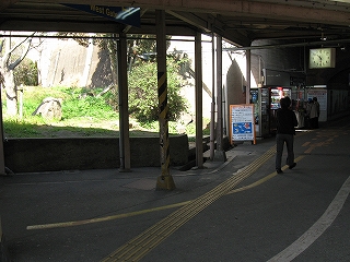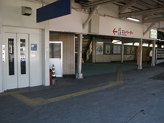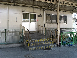待合室前。かさ上げのため段が付いている。