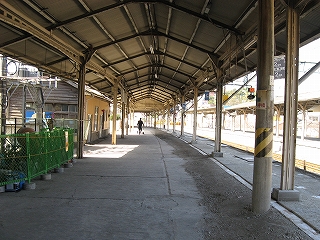 改札前付近から見たホーム直方方の風景。右手はトイレだが、