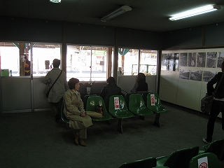 ホーム側に待合室内を見て。