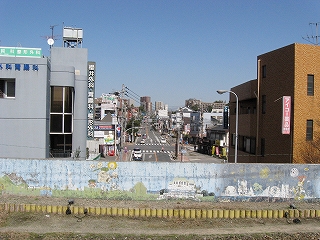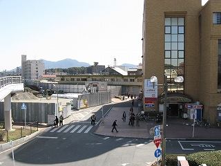 鷹見口駅前への入口からみた、本式の折尾駅。