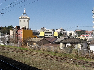 駅前は中くらいのビルに取り囲まれるかのようだった。たいていは駅を出ての方向に広い道がとりついているはずだから、よく考えると大駅にしてはちょっと変わっている。駅前の一部からはお濠が伸び、飲み屋が連なる。北九州の苦労を率直に表現してくれている。そのあたりで駅の建物を写している老爺。やはりそんなふうに撮りたくなる建築。二階建ての洋館で、一代目のものをこうして今も使っているのだった。ただ色が薄桃に塗られていて、これは慣れ親しまれていることで認められているのかもしれない。けれど直方のように澄ました白色よりは却って明るかった。白色って、写真だけのことでもなくて、なぜか暗いところがある。