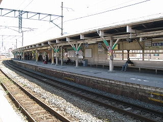 隣のホームと駅舎裏。明治時代風かもしれない