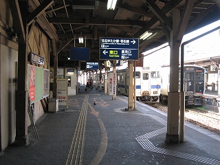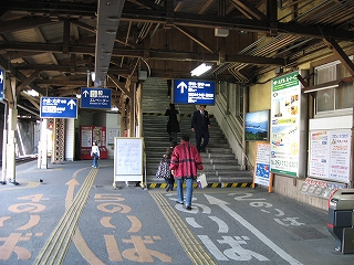 左手に通路があるが、2階の鹿児島本線の上りホームへに続いている。