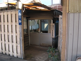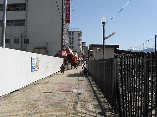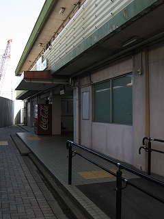 ひたすら戻る。何百キロも先にあった都市は、やはり他人の街であった。すべてが急によその街の人の顔になる。こうしている間にも時間が過ぎていく。唐辛子を売っていたコンクリートの通路を越して、ふっと左の細路地をのぞくと、あった。その駅前は壁を立てての工事中のため、まったく視界に入らなかった。ちなみに、さっきから工事という工事は、むろん折尾駅改築の一連の工事となっている。しかしこの場所、ロータリーを挟んで本式の駅と真向かいにあり、想像したよりかなり近かく、なーんだ、と思った。