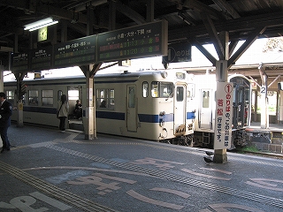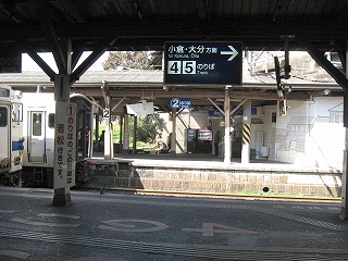この3番線は鹿児島本線だけあって殊に人は多く、後ろに店控えた、幅のたいしてないホームにどうにか短く整列し、特急の入線が待望されていた。そば屋や売店に出入りする人や、壁際の椅子で待つ人の浮遊分子が、いっそうホームを賑やかにした。またこのときはしばしば着物姿の人を見かけ、また奥ゆかしく洋服を纏った、目の丸く黒髪の落ち着いた中年女人などが、自分の視界に流れた。九州まで来たのだった。