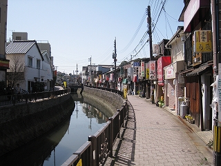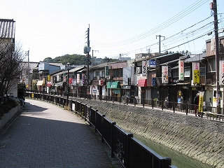 さきほどの川縁の飲み屋街が見える。