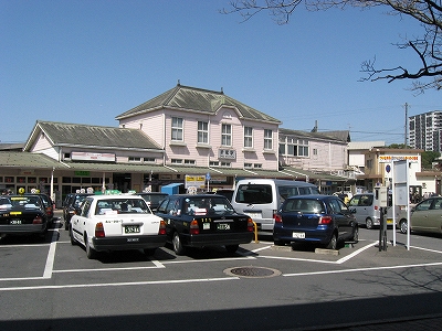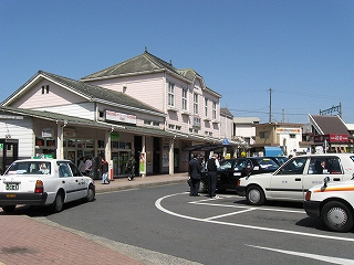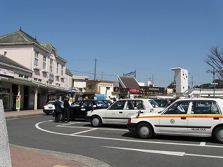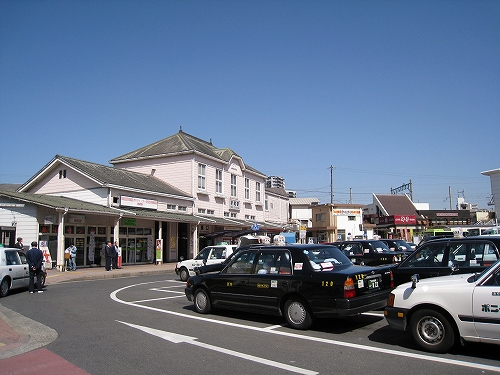 タクシーの駐車場が駅舎に近いという古き良きらしき一景があった。