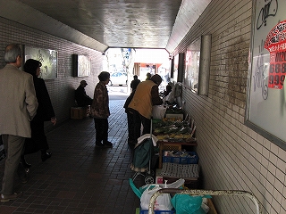 結構遠いのだろうと思って歩きはじめ、鹿児島本線をくぐる通路を越す。これで駅前からは出てしまったことになるのに、この時点で間違っているとは、まだ気づかず、春が来たな、などと意気揚々揚々と歩いていた。その通路にまで市は立っていて、唐辛子などが売られているのに、感心した。むかしふうの賑やかさが隅々まで行き渡っていた。