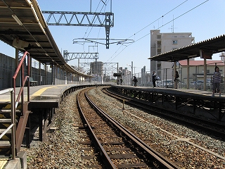3番線ホームから見たカーブする隣の4・5番線ホーム。