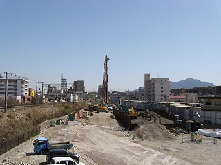 上り鹿児島本線と短絡線の間の様子。大工事中。