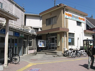 駅前と駅舎。