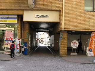 ビルの中に作られた公共連絡通路。この部分の土地は公道らしい。