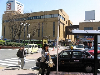 本屋が入っている駅前の一角。