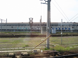北海道新幹線の宣伝。その暁にはここは車両の残骸置き場にでもなるのだろうか。