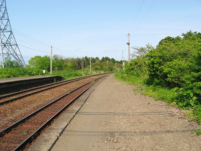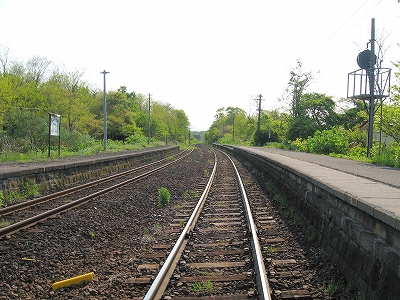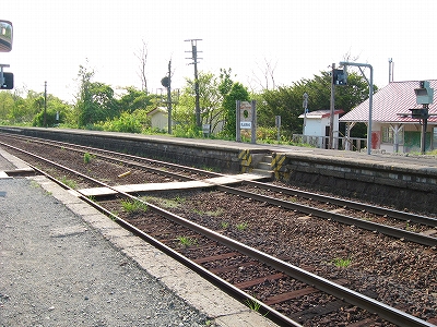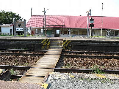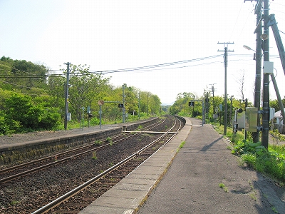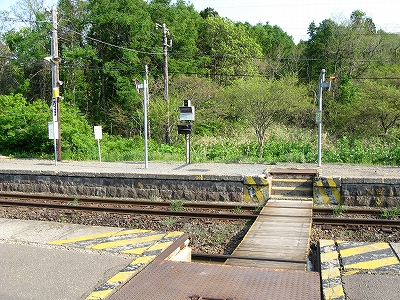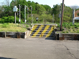 駅舎前の敷地を函館方に進んだ風景。右のスロープをあがるとさっきの上りホームへ。