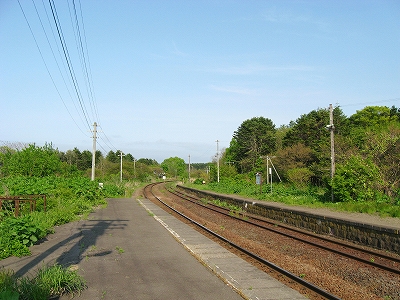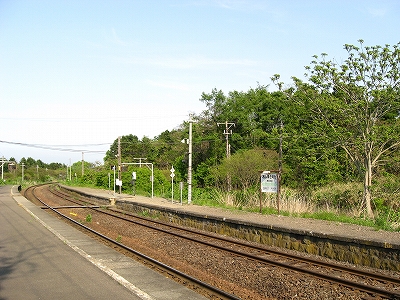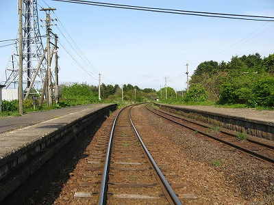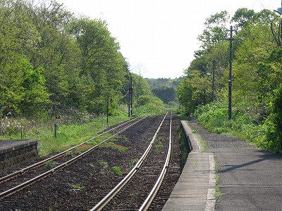 構内は優しげな低木林が近く、神的な細やかさで緑が点描されているけれど、駅舎はその向こうに開放感をひとり抱いていて、顔をあっちに向けて、海を遠くに望んでいた。ホームでそうして後姿ばかり見せている駅舎は、はやくお前も駅前に出てごらんよ、と誘っているみたいだ。でも裏手が気になり、かつては路盤だったのだろうか、だとしたら何かないか、と柴に踏み入れてみた。人の縄張りを少しでも離れたところに見つけたかっのだろう。誰も注意しない雑木林だけに。
